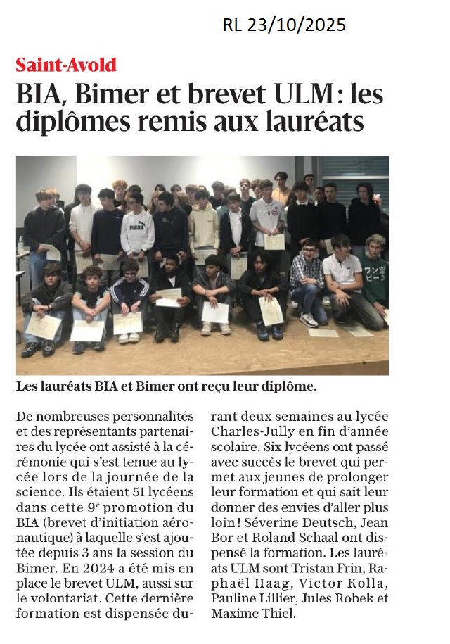 A la unePressbook BIA, Bimer et brevet ULM : les diplômes remis aux lauréats – RL 23/10/2025 Publié 5 novembre 2025 Isabelle Kraemer